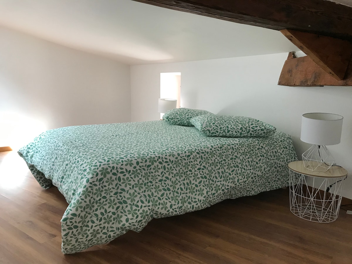 En Drôme provençale, à côté de Grignan, entre vignes et lavande, notre gîte est le seul de la propriété. Il se trouve à l'étage, pour quatre personnes adultes, attenant aux mas des propriétaires. Pièce à vivre de 48 m2, avec cuisine ouverte toute équipée, coin détente avec téléviseur 127 cms, climatisation. Suite parentale de 35 m2 avec douche italienne, double vasques, wc indépendant, climatisation. Mezzanine de 30 m2. Les deux lits font 160X200. Terrasse privative avec barbecue weber.
