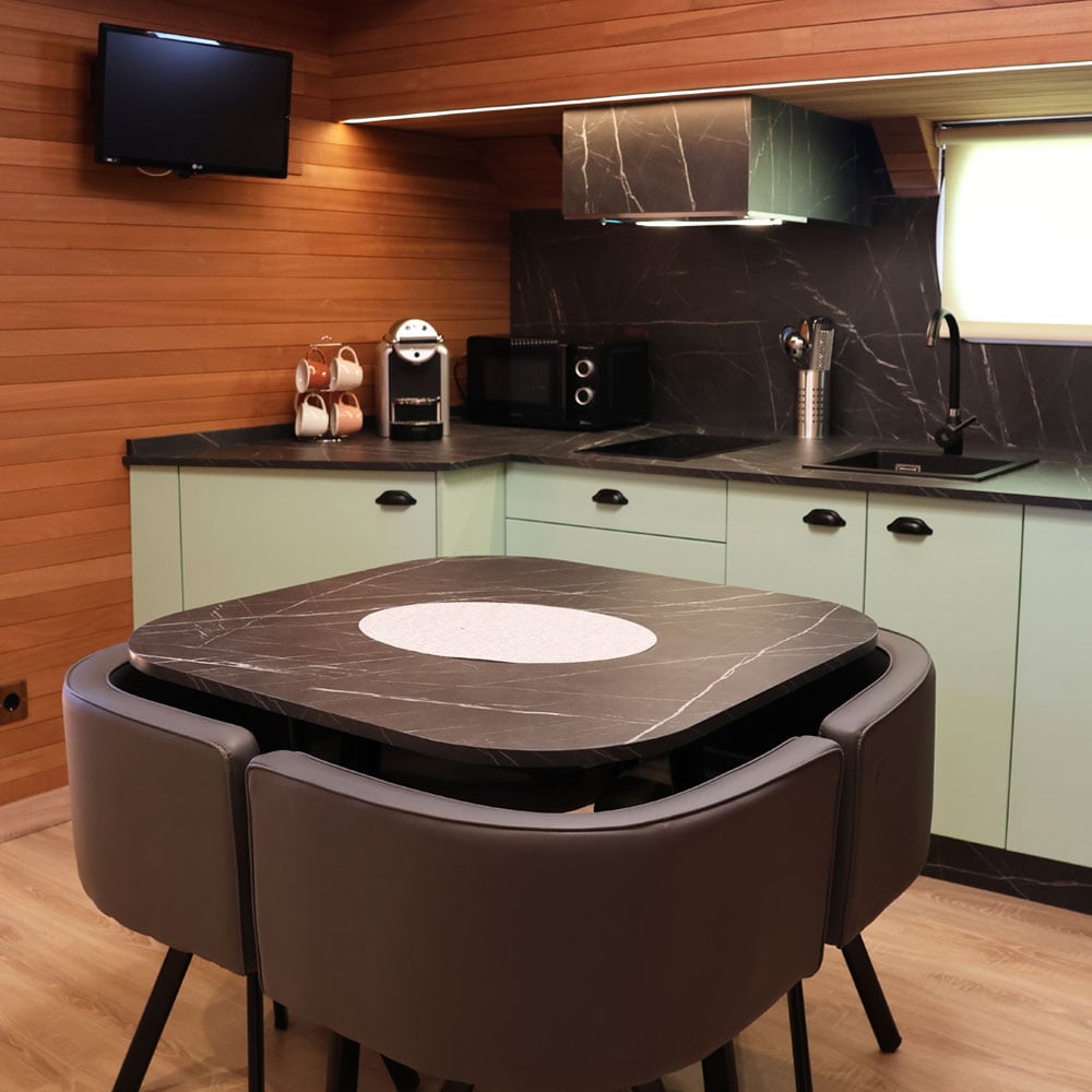 客廳非常寬敞、明亮,客廳中央有大壁爐。 從每扇3公尺的2扇窗戶望去,景色就像圖片一樣,因為它們享有無與倫比的景色。 臥室配有可收看網路影音的電視和空調。 此外,所有臥室都有自己的獨立浴室,增加了便利性和隱私,並配有吹風機。 房子有獨家的燒烤和花園家具。 免費木柴、WiFi 服務、付費電視