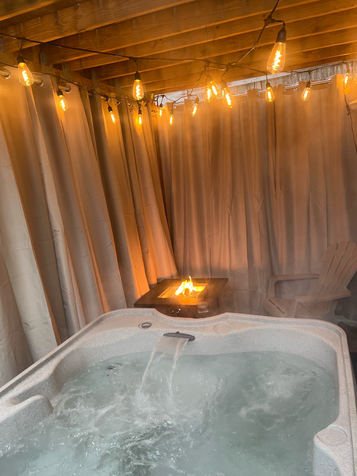 Boutique patio suite in downtown Albany featuring a private outdoor hot tub, fire table, and two ensuite bedrooms. Steps from the Capitol, MVP Arena, and restaurants, this newly designed space blends hotel comfort with a cozy private retreat. Enjoy a fully stocked kitchen, fast WiFi, smart lock check-in, and a heated spa under string lights year-round. Ideal for couples, professionals, or small groups looking for a stylish stay near everything.