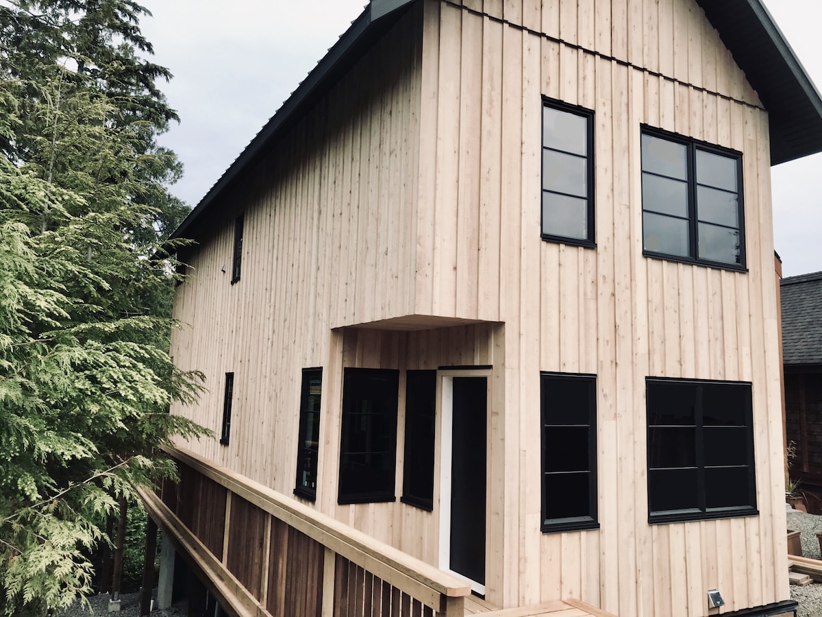海濱新建現代設計的2層小屋,有2間臥室。每天早上透過我們的2層高客廳窗戶觀看日出。欣賞春灣入口和雨林的美景。設備齊全的廚房,可烹調所有餐點。後甲板上有烤肉。客廳配有雙人沙發床。最多可容納6人的優質空間。完美的位置!步行5分鐘即可抵達尤克盧利特最迷人的步道:燈塔迴圈。**禁止攜帶寵物。