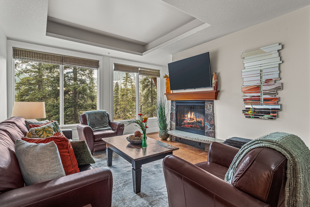 在Spring Creek Mountain Village的Rundle Cliffs Lodge,這間華麗的1間臥室頂層公寓,讓您的洛磯山脈冒險之旅以時尚的方式開始。高聳的大教堂天花板,景觀迷人,環繞寬敞的起居空間和美麗的石製壁爐。在完美的廚房中烹飪。在巨大的浸泡浴缸中放鬆身心,或在皇后臥室的豪華5星級酒店床單中舒適入眠。沿著風景優美的木板步道步行即可抵達坎莫爾市中心的餐廳、酒吧、咖啡廳和購物商店。