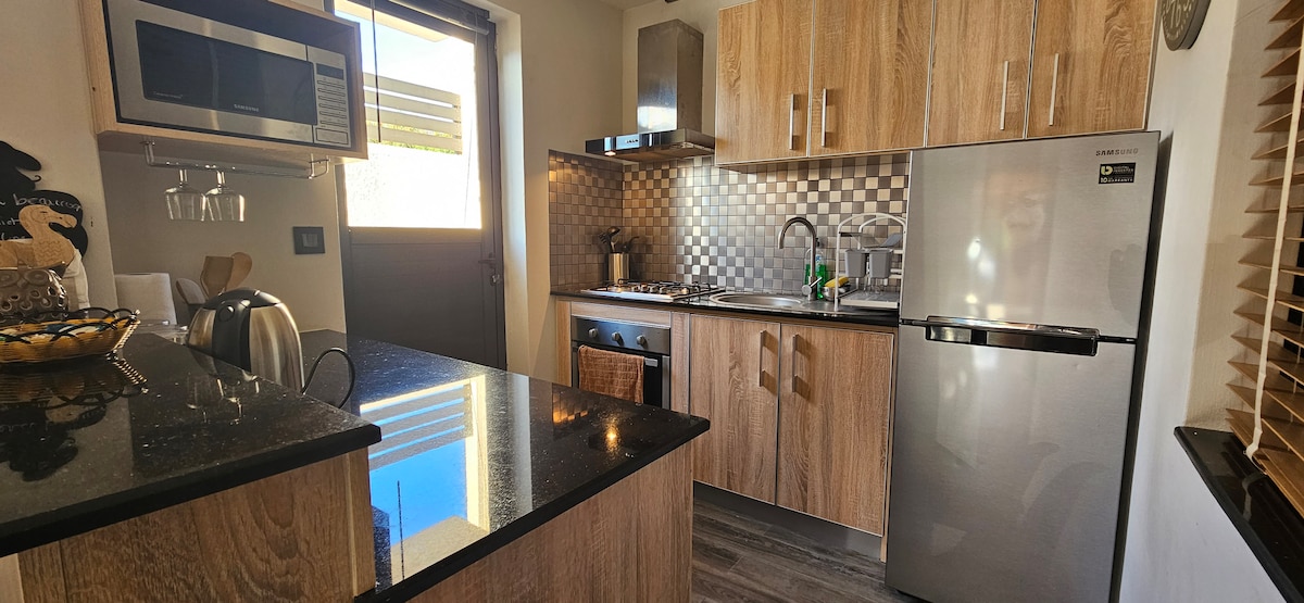 愛上美麗的毛裏求斯西海岸! 這間配有私人花園的現代3臥室房屋距離海灘僅500公尺,回到家中放鬆身心。 大膽的建築和美麗的簡約室內設計具有自由流動的室內設計、超大開口(充足的空氣和光線)和中性顏色-每個設計都精心打造,讓所有房客都感到賓至如歸,並配備了您所需的一切。 漫步海灘,附近的當地餐廳和商店。