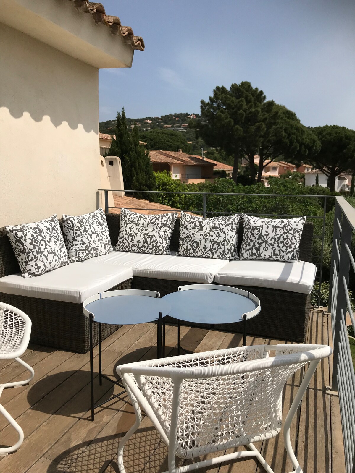 120平方公尺的現代單層別墅,非常適合在寧靜安靜的環境中與家人或朋友一起度假。 別墅包括3間帶浴室/水的臥室、可俯瞰帶泳池的露臺、火坑和花園家具的客廳。 在露臺上,您可以欣賞到周圍的葡萄園和山脈。 提供牀單和毛巾 地理位置優越,距離市中心、海灘和碼頭只有 3 分鐘路程,可搭乘穿梭巴士前往阿雅克肖。