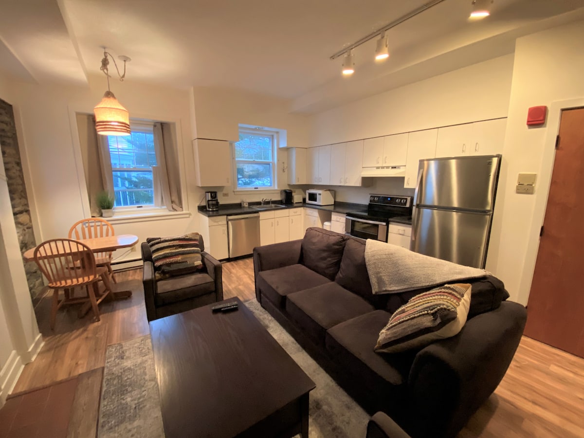 1 bedroom with 10ft ceilings with lots of natural light. Walking distance to amazing restaurants, craft breweries, walking and biking trails, museums, theater, parks, boating, and skiing. Close to SUNY and CCC campuses and UVM/CVPH hospital. Airport is 5 minutes away. Lake Champlain and boat basin are only a 5 minute walk. Lake Placid, Burlington and Montreal are an hour or less away. Plenty of parking for vehicles and anglers with their boats. Lots of local history to explore.