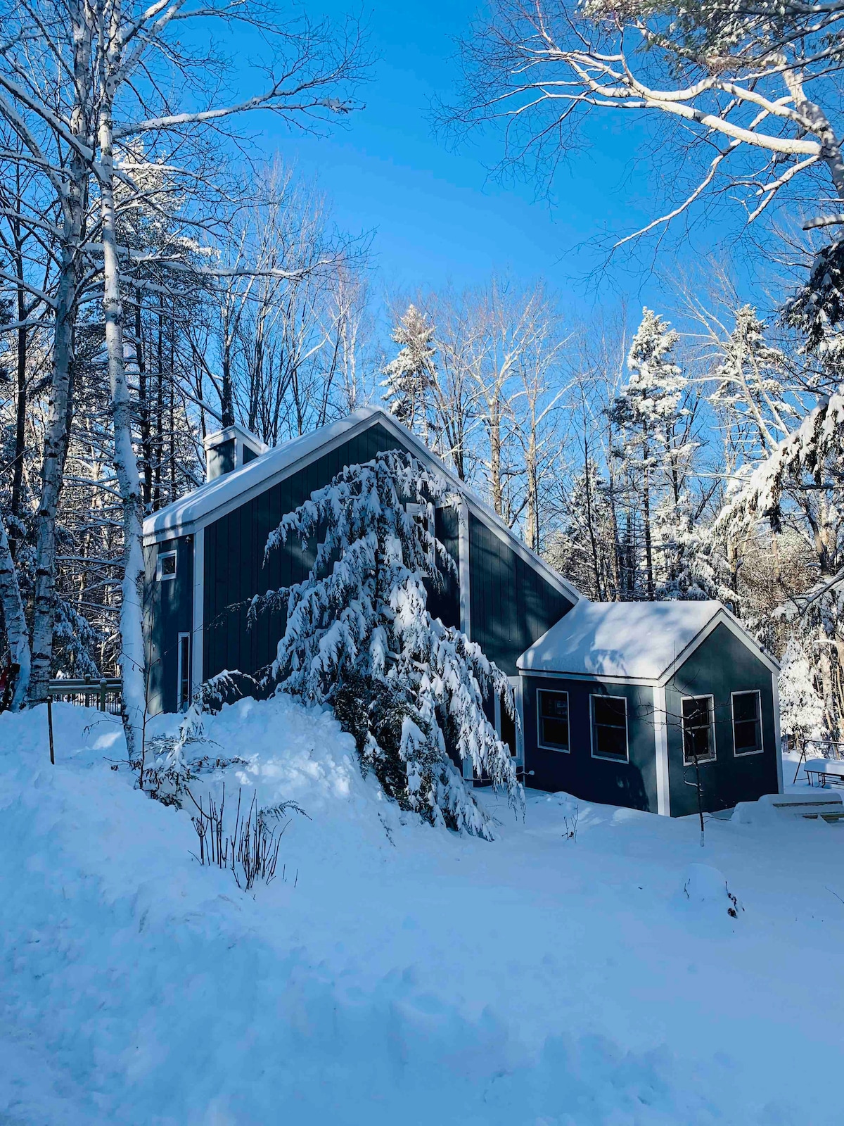 Escape to Millmoon A-Frame Cabin <2 hours Boston. It's YOUR basecamp near: • Pristine Newfound Lake • Wellington State Park • AMC Cardigan Lodge • Ragged Mountain, Tenney Mountain, Loon ski resorts • Plymouth State University • Mountain biking, hiking, snowmobile, birding, swimming, beach nearby After your adventures relax with a fire pit, grill deck, and soothing forest views immersed in the serenity of our working homestead. Have 3+ guests? See our lodge + sauna airbnb.com/h/darkfrostlodge