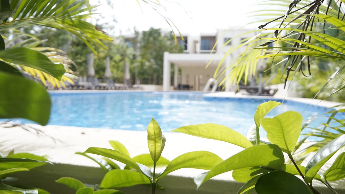 @Coquito 您會發現一個舒適的公寓,配備全新設施,非常適合在坎昆或里維埃拉瑪雅冒險一天後放鬆身心,或在陽光和游泳池中度過平靜的一天,配備了您所需的一切,讓您享受如家一般的住宿體驗。重要的是,它位於三樓,您可以享受安靜的噪音,欣賞美麗的日落,但需要注意的是,它沒有電梯,需要爬三樓樓梯。