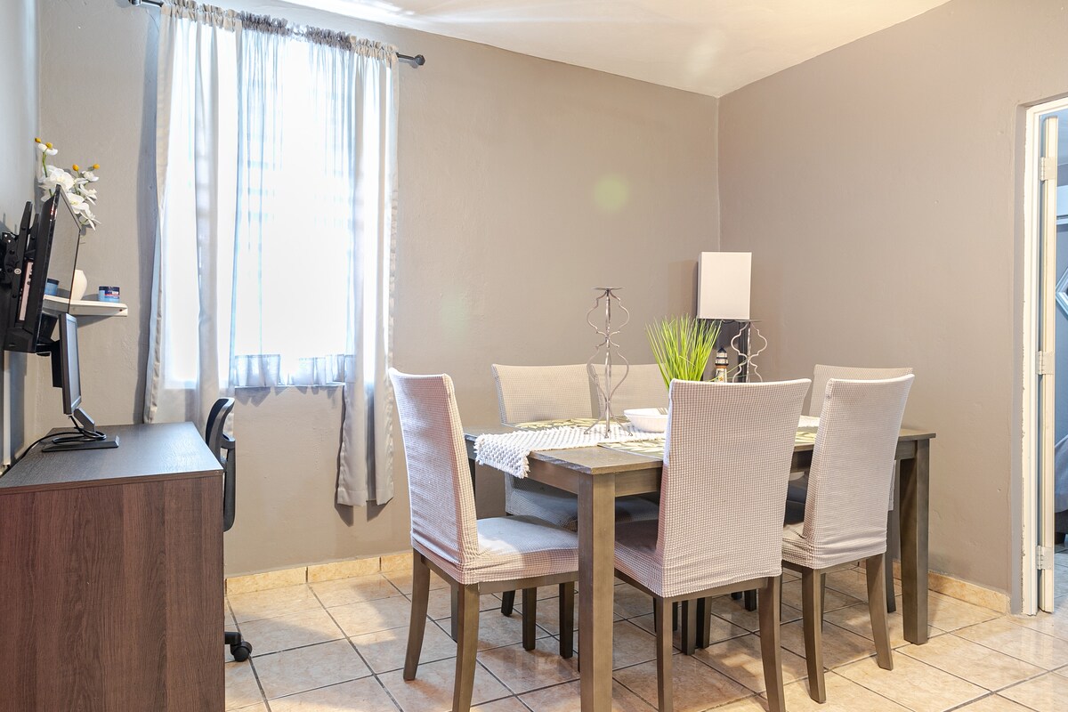 享受寧靜的私人住宿。 位於Vega Baja市中心的絕佳位置。 距離幾家藥店、超市、餐廳、海灘、購物中心、醫院和葬禮之家僅幾步之遙。 30秒即可抵達Carr # 2。 舒適的公寓,提供WiFi和Neflix服務。 設備齊全的廚房,包括空調、電視、吹風機、熨鬥、室外監視錄影器和熱水器。 非常適合全家人或情侶度假。