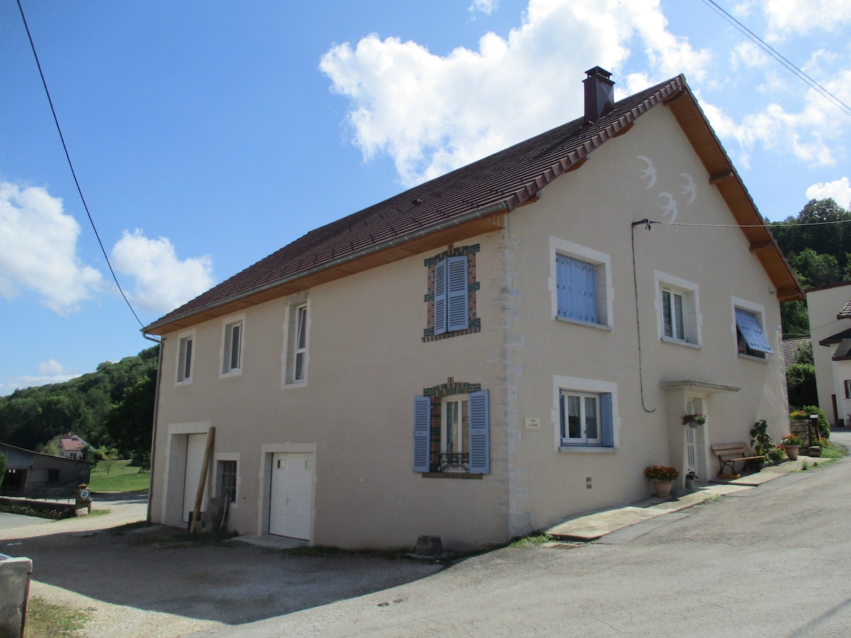 Pièces spacieuses, grandes hauteurs sous plafond (3.80m), belle lumière naturelle, construction pierres de taille et bois, mobilier ancien, équipements électroménagers complet neuf, chauffage central + poêle à bois. environnement isolé, naturel et calme. proche des commerces (6km orgelet et 10km LONS LE SAUNIER). Proximité de nombreux attraits touristiques. idéal pour départ des randos, ouvert toute l'année, location minimum 2 nuits, week-end ou semaine. 5 couchages (1 chambre+1convertible).