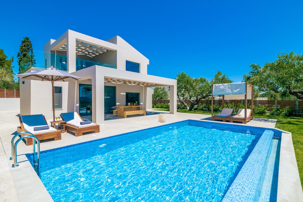 歡迎來到扎金索斯市中心的私人綠洲。 這棟設計前衛的別墅坐落在寧靜的山坡上,可欣賞橫跨島嶼自然美景的全景 別墅的每個細節都經過精心策劃,營造平靜、時尚的氛圍—從地球色的室內裝潢和手工製作的家具,到優雅的開放式起居空間和步入式淋浴間 位於島嶼中心,可輕鬆抵達最美麗的海灘