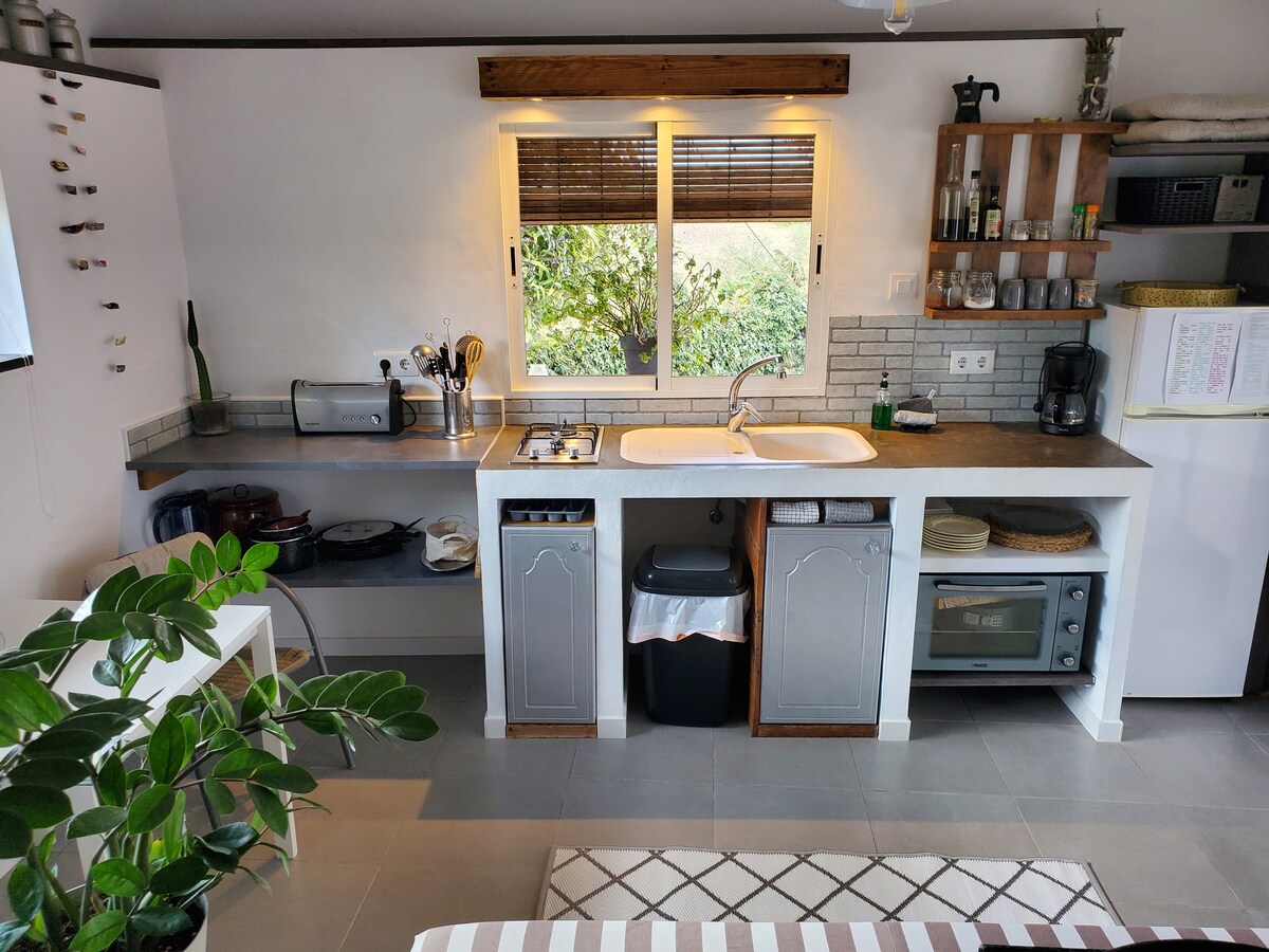 Située au pied de la sierra de Grazalema, sur un terrain en pleine nature, vue sur les oliviers. Accès par un chemin forestier... la maison et totalement privée sa terrasse totalement clôturé, espace chambre, canapé, cuisine équipée, salle de bains douche italienne, accès direct au jardin et la piscine... La maison et tout équiper, simple, lumineuse, rustique, et chaleureuse. (piscine partager avec la Casita 1, ouverte toute l'année).