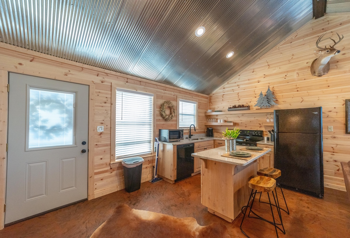 小木屋位於山頂,可俯瞰我們的工作牛牧場。小屋已更新,乾淨整潔,設施一應俱全,讓您入住一晚或整個月。 完全私人的空間,包括有線電視和網路,以及洗衣機和烘衣機。 600英畝的牧場有釣魚池塘和徒步小徑,我們的房客 歡迎享受。 房客小木屋不允許舉辦活動或派對。如果您的家人是當地人,歡迎您邀請他們來烤肉或用餐。