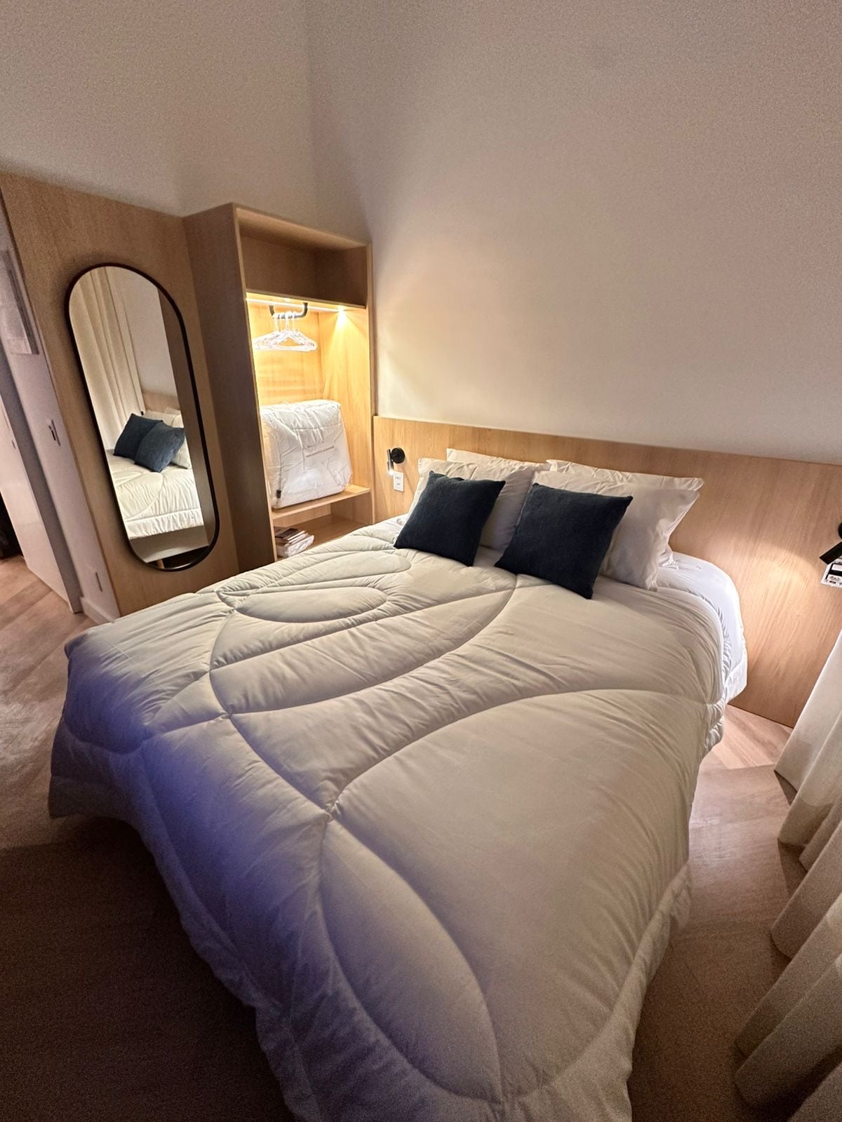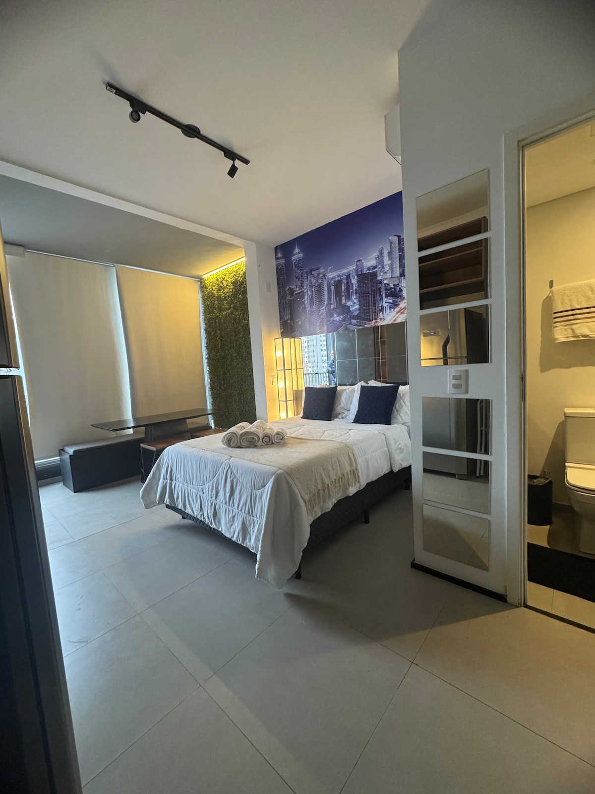 全新公寓,現代風格,高標準,地理位置優越,可欣賞安聯公園( Allianz Parque )的美景。 毗鄰商場、各種商店、交通工具、公園、旅遊景點和商業大樓。 單間公寓設備齊全,配有舒適的標準雙人牀、智慧電視和網路。 廚房配備所有餐具、爐台、冰箱和微波爐。有停車位(旋轉式)。 一切都近在咫尺,溫馨舒適,非常適合體驗美好時刻。