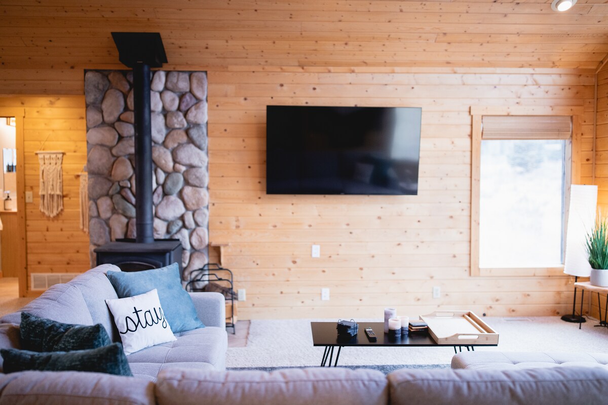 與全家人一起逃離到這個位於科羅拉多州Placer Valley-Alma的美麗3床/2.5浴室小木屋!沉浸在1英畝的私人寧靜土地中,四周環繞著白楊樹、常青樹和科羅拉多州一些最高的山脈!避開I-70交通,從丹佛通過HWY285輕鬆通勤1小時45分鐘。距離布雷肯里奇(Breckenridge)僅25分鐘!滑雪、徒步旅行、泛舟、飛釣和吉普車都在這裡!已安裝Starlink WiFi!