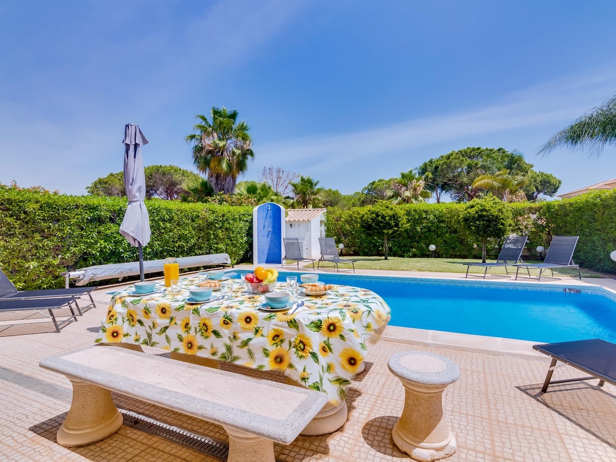 這座宏偉的4套房別墅提供獨特的舒適和隱私體驗。 每個空間都有舒適寧靜的氣氛,可供休息。 無論是休閒時光或用餐,室外空間非常適合享受阿爾加維的陽光。 花園內有當地花卉和果樹,還有私人泳池,非常適合與家人或朋友一起度過無壓的假期。 位於Vale do Lobo、Falésia海灘附近,距法魯機場30分鐘。