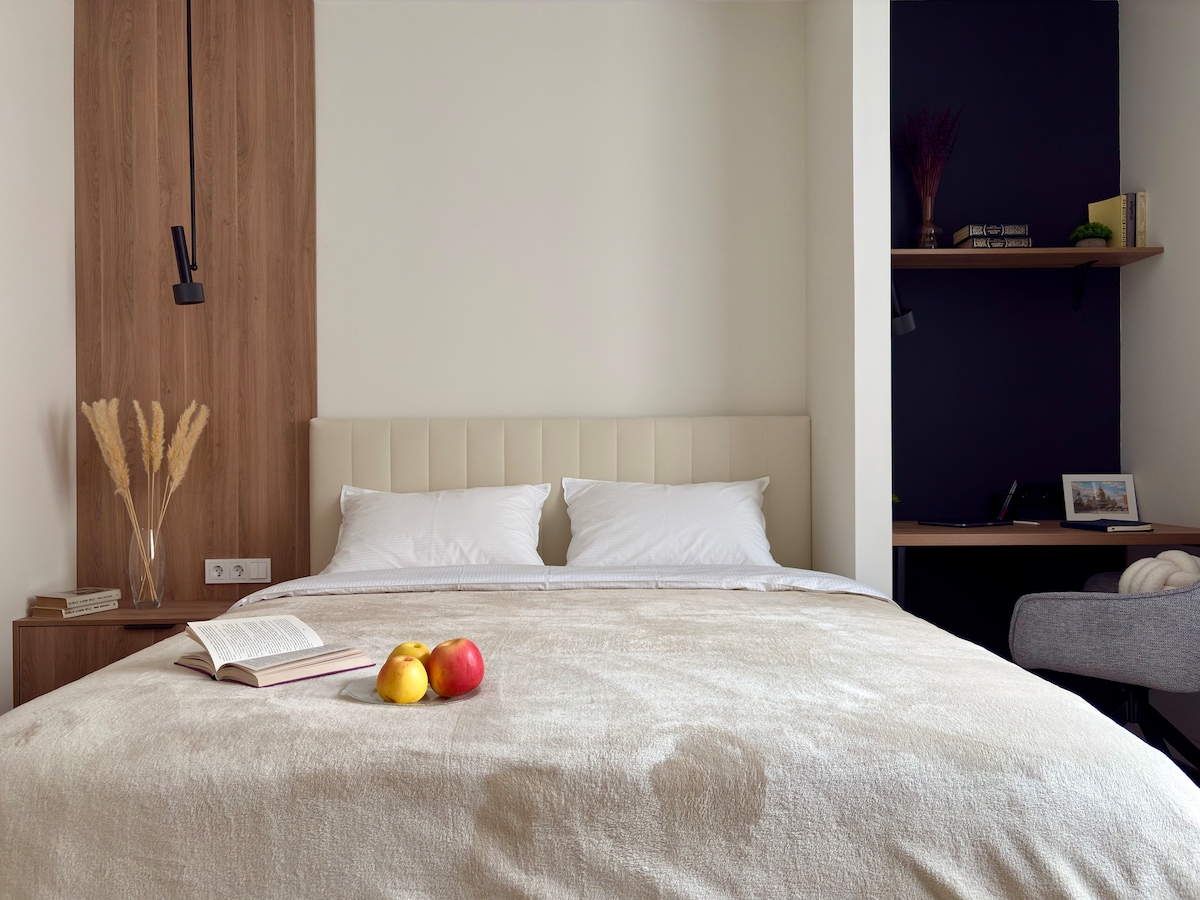 Новая и уютная евродвушка в ЖК Green City. Светлая гостиная с диваном и ТВ, спальня с большой кроватью, кухня с микроволновкой и духовкой, ванная с душем и стиральной машиной. Есть гардеробная, рабочее место и Wi-Fi. Самостоятельный заезд по коду. 10–15 минут до центра, рядом кофейни и магазины. ⚠️ Максимальное размещение — до 3 гостей. Количество гостей должно соответствовать бронированию. Постельное бельё предоставляется строго по числу указанных гостей.