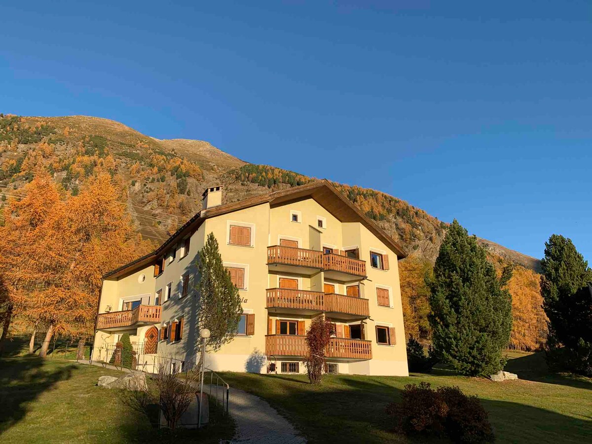 * *同一間公寓/房東,新帳號* * 在瑞士最美麗的景點之一享受寧靜的中心位置公寓,步行5分鐘即可抵達山脈和滑雪電梯。 這間現代化的公寓在漫長的一天滑雪後提供舒適的度假勝地。 您還可以找到一個溜冰溜冰場、各種餐廳、越野山坡和著名的奧林匹亞雪橇在聖莫裏茨-塞勒裏納( St. Moritz-Celerina )。 步行25分鐘即可抵達聖莫裏茨( St. Moritz ) ,或開車5分鐘即可抵達。