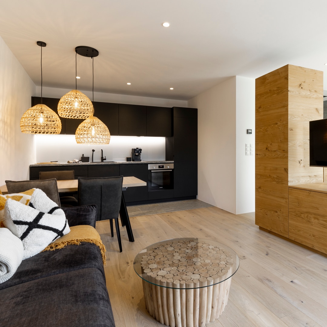 我們的公寓光線充足,設備齊全,並設有私人朝南陽臺,可欣賞獨特的景觀。由於小木屋位於市中心,無論是夏天還是冬天,您都可以直接從住宿步行開始您的假期活動。之後,您可以在小木屋的私人桑拿房放鬆幾個小時,或在沙發上喝一杯葡萄酒,透過我們的全景窗戶欣賞美景,結束一天的行程。