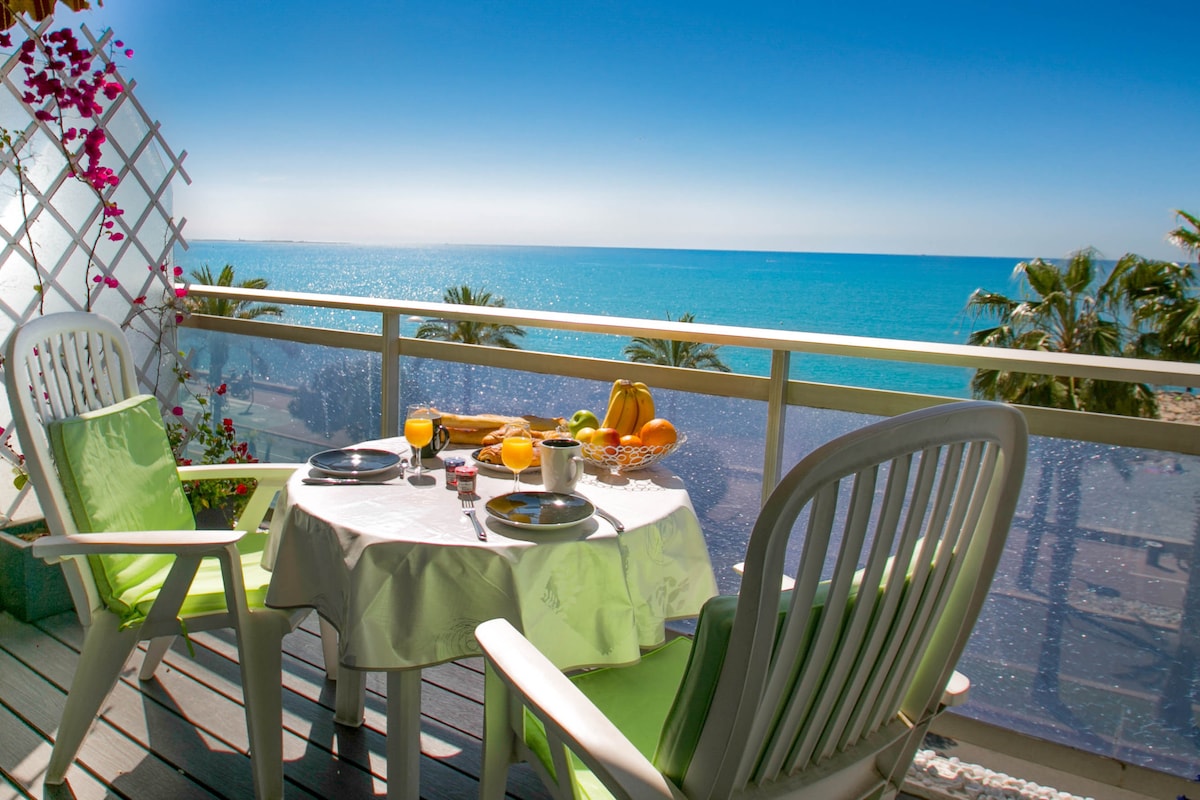 « SEAVIEWS BY JENNI MENTON »présente: Superbe 2 Pièces NEUF en Front de Mer, sur la Promenade du Soleil. 50 m2 de design,large terrasse de 18m2, vue mer comme sur un bateau de tout l'appartement. Conçu pour le confort de 4 personnes. Décoration très recherchée,matériaux et équipements haut de gamme. GARAGE FERMÉ* ASCENSEUR CLIM SMART TV INTERNET ILLIMITÉ HAUT DÉBIT ENCEINTE BLUETOOTH BOSE A quelques minutes à pied de tous les commerces et activités. Bus en bas de la résidence, gare à pied.