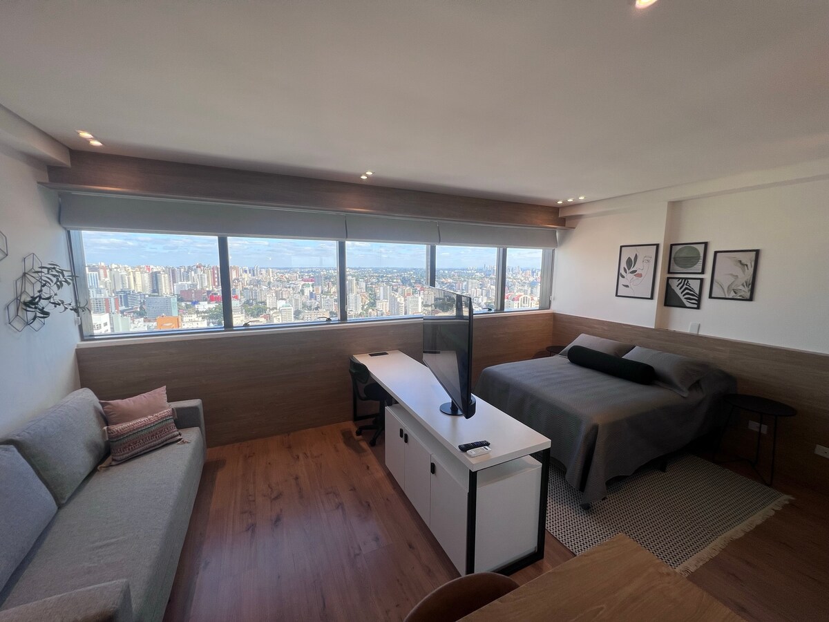 Studio moderno, novíssimo, aconchegante, perfeita localização, com uma linda vista da sacada, principalmente a noite . Wi-Fi rápido, mesa de trabalho, TV smart 55” , cama Queen. Ar condicionado (quente/frio). Máquina de lavar e secar roupa e uma linda ilha na cozinha. 50m2 de muito estilo-27ºandar, Silencioso. No Centro/Batel, próximo à comércios, bancos, shoppings, polo gastronômico e Hospital . No prédio :Piscina, academia, sala de jogos, sauna, jacuzzi, portaria 24 horas.