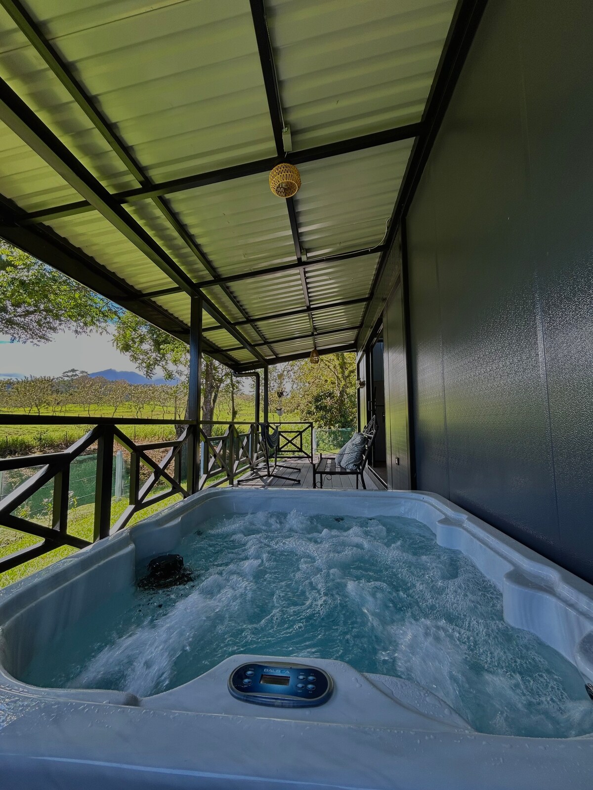 Nestled high on the Platanar Volcano slopes, enjoy sweeping views of the northern plains below. The lights of Aguas Zarcas twinkle below at night, the only sounds you hear are toucans, macaws, coyotes and mountain breezes. This is a place for ultimate relaxation far from the crowds at the beaches. A place to be alone and reconnect with nature. Spend the day on the patio reading a book or soaking in the jacuzzi. Watch the lightning in the distance. Enjoy cool weather away from the lowland heat.