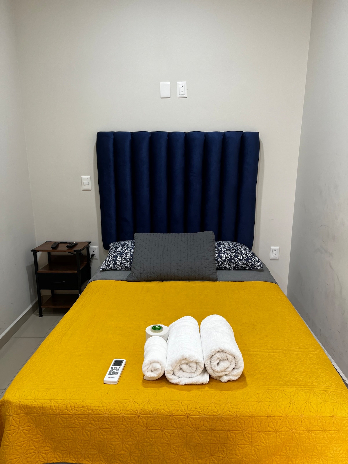 Departamento tipo loft estilo moderno-mexicano, totalmente amueblado, con aire acondicionado, 1 cama matrimonial, sala con sofá cama, closet, baño completo, cocina integral, comedor, smart TV, internet en el departamento y en areas comunes, lavadora y secadora de uso común, areas verdes, servicio a domicilio de restaurantes de la zona y excelente ubicación dentro de la Plaza Luna Lima.