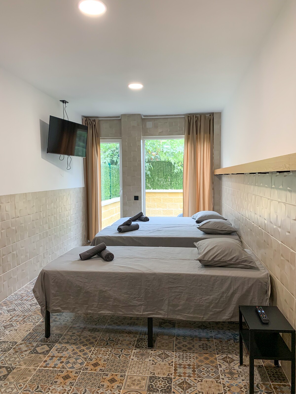 Habitaciones equipadas con las comodidades más modernas para asegurar una estancia inolvidable. Habitaciones insonorizadas, colchones antialérgicos , Smart TV de 50″ en cada habitación, aire acondicionado (frío/calor), radiadores eléctricos en los baños y cafetera L’OR Phillips con cápsulas. Conexión Wi-Fi gratuita, duchas amplias con efecto lluvia, toallas, secador de pelo, minibar y artículos de aseo. En la zona común, encontrará microondas, hervidor y tostadora para su conveniencia.
