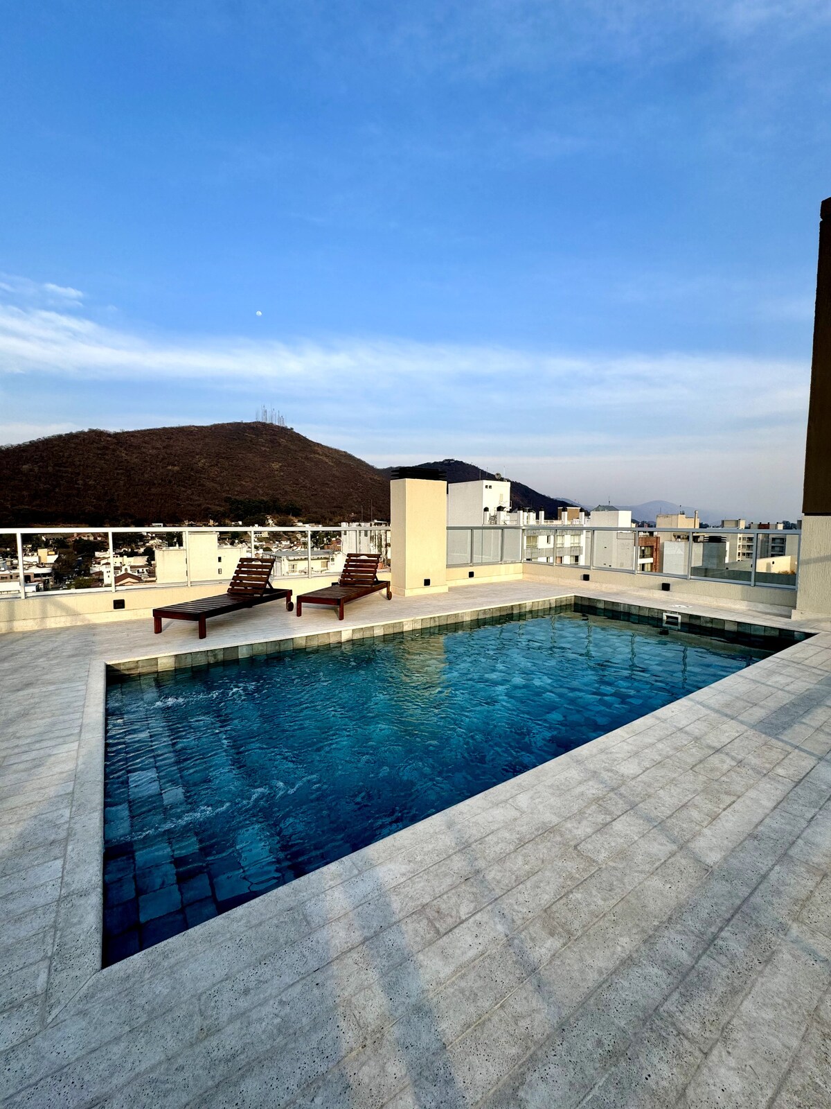New apartment in a privileged area of Salta. A few blocks from the main tourist attractions, restaurants and shopping malls. Ideal for tourist and business visits. Public parking on the quiet street below, perfect for a good night rest. Pool and grill on the terrace with beautiful views of the hills.