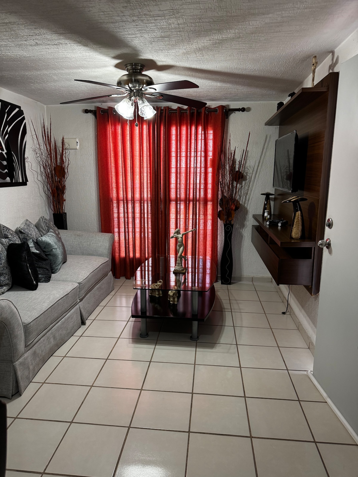 在這個安靜的住所中,您可以與全家人一起放鬆身心,享受您想要的所有舒適和便利設施。 我們有 3 間臥室,2 間位於樓上,配有衣櫃,1 間位於樓下。 樓上有 1 間浴室,樓下 1 間半浴室。 設備齊全的廚房,讓您感到舒適。 寬敞的餐廳,適合全家享用。 客廳配有電視。 後院有洗衣機。 可停放 1 輛大型車輛或 2 輛小型車輛的有蓋車庫。 家庭環境中的泳池(共用泳池)