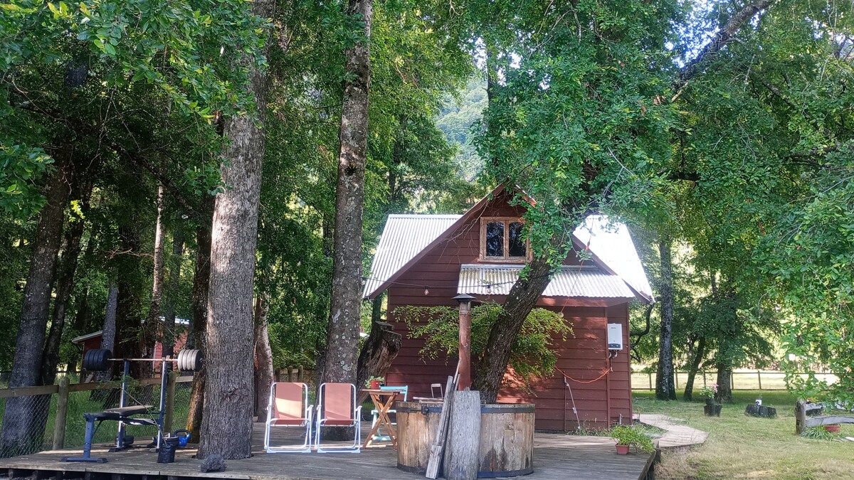 這是一個美麗的地方,被大自然覆蓋,有許多本地木材樹木,周圍有一條美麗的小溪。 通往小屋的道路已經鋪設,小屋位於 Conguillio 國家公園、步道、Icalma 湖、Sollipulli 雪山、Truful 跳水台以及該地區的其他旅遊景點附近。