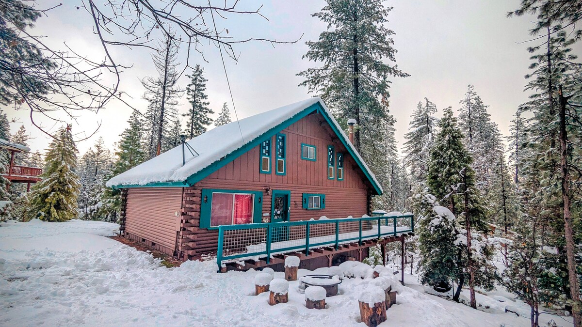 我們的度假屋舒適,靠近Bear Valley、Big Trees、Murphys和Arnold。度假屋距離Bear Valley Mountain Resort 30英里。 舒適的山間小屋設有私人露臺、室外火坑、熱水浴缸、壁爐、皮艇、槳板、燒烤、室外餐桌、躺椅、WiFi 和寧靜的森林環境。 山間小屋距離白松湖(White Pines Lake)不到3.0英里。 我們的小屋位於距離卡拉維拉斯大樹州立公園5英里的地方。