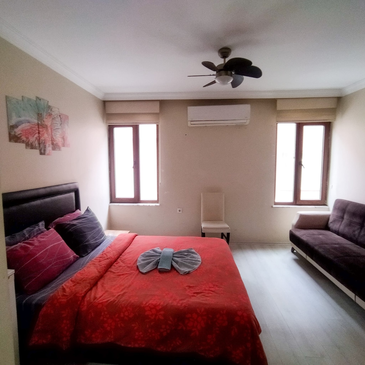 這是一個日常旅館,您可以欣賞海景,享受阿馬斯拉(Amasra),交通便利,一切都在您的手中。我有兩套公寓,一套在同一棟大樓的樓下,另一套在樓上,一套有開放式陽台,另一套有法式陽台。如果您查看我的房源並選擇其中一套,或發送訊息給我,我會盡力幫助您。