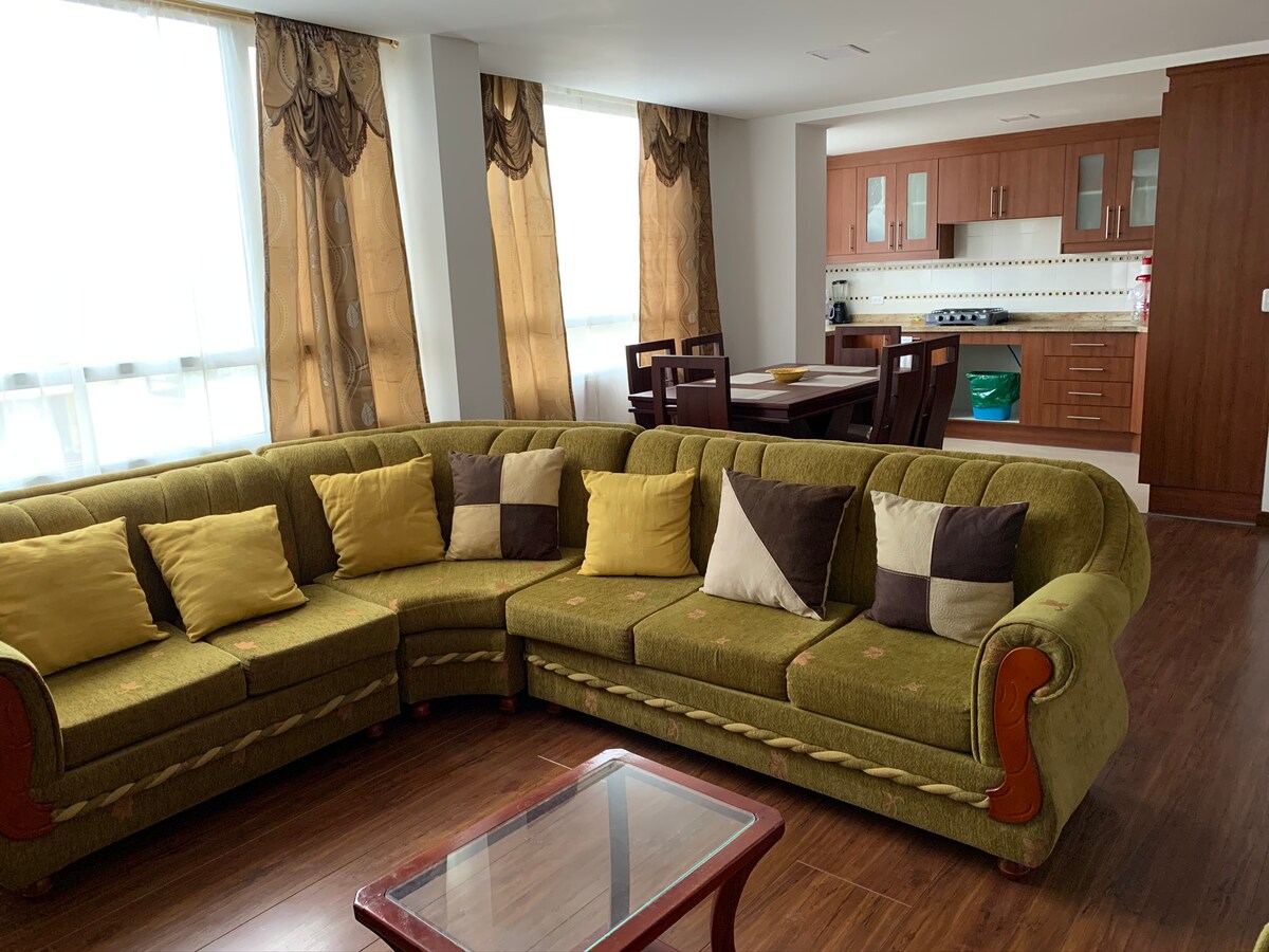 坐落在安巴托市中心,安靜、可靠和戰略性的地方,靠近餐廳、公園、博物館、Zona Rosa、慶祝遊行、醫院、購物中心。 它有停車場、兩間衛浴、衛浴和廚房的熱水、小物品洗衣房和另一個個人洗衣房、熨衣區、三間臥室、一間有2人床和兩間有1 1/2人床、兩張沙發床、光纖網路、電梯,並可欣賞美麗的城市景觀。