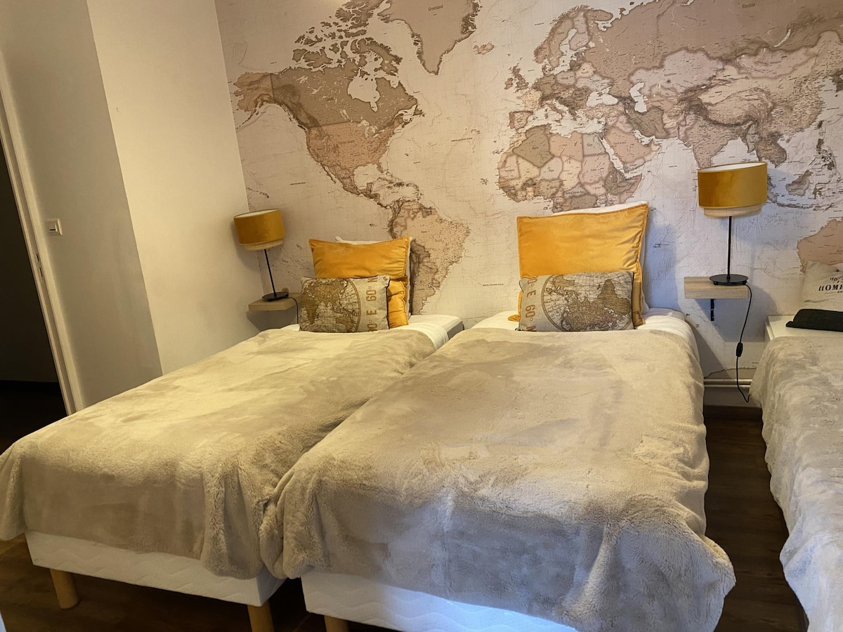 河畔的整套房子(安全通道) ,共有3棟房子。 在這個住宿中,您將完全自主地容納4位房客(封閉房間有一張雙人牀, 2張單人牀( +客廳的沙發牀)。 位於Corbie市中心的綠色環境;步行即可抵達所有設施(火車站、市中心、商店) ;房源內有停車位(在善良友好的房源內有一隻小狗: -) )。