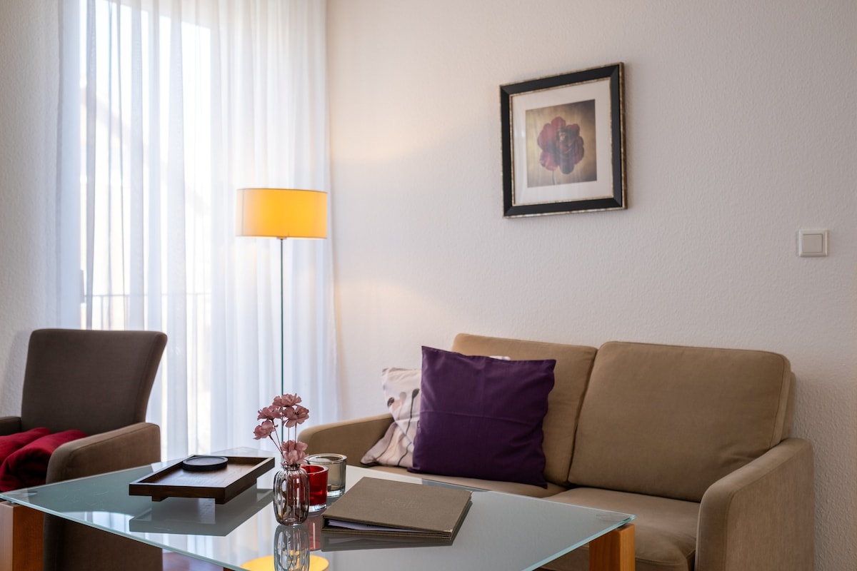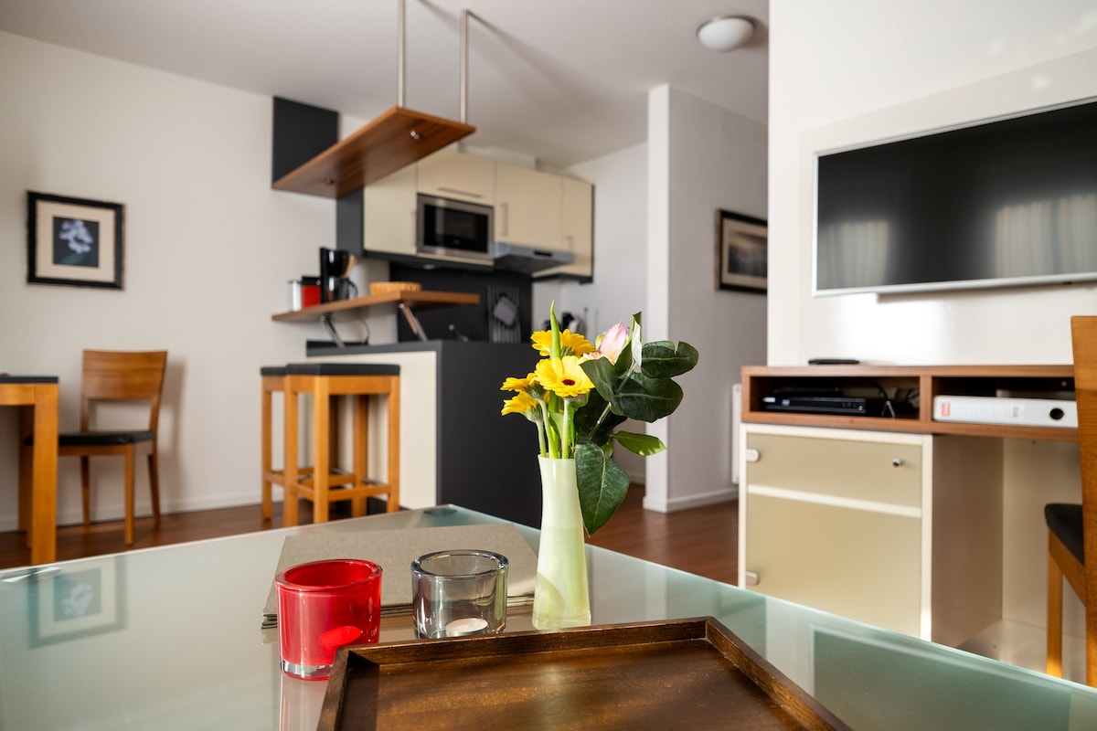 Bright, cozy and maritime 2-room apartment, 36sqm, with balcony, ground floor, Good facilities incl. WLAN Internet, Alexa and parking. Swimming pool and sauna use possible during opening hours. Fitness studio directly at the house. Kitchen with window, oven, microwave+grill, fridge with freezer, coffee maker, kettle and toaster. In this special accommodation all important points of contact are very close - so planning your stay will be very easy.