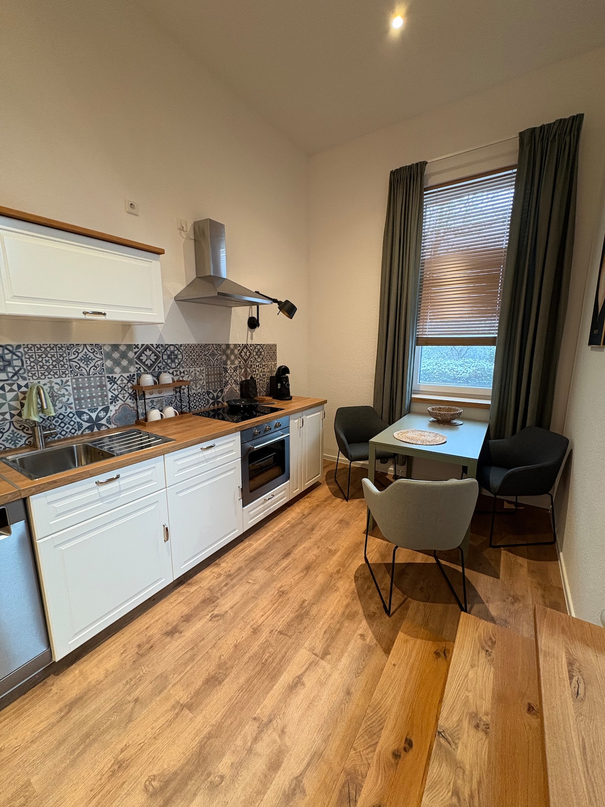 Helle & gemütliche Ferienwohnung (75 qm) in Bad Zwischenahn – nur wenige Minuten vom Zwischenahner Meer und Zentrum entfernt. Ein Schlafzimmer mit Doppelbett & French Bed, ein großzügiges Wohnzimmer mit Schlafsofa und kleinem Arbeitsbereich, voll ausgestattete Küche, WLAN, Waschmaschine & kostenloser Parkplatz. Die Wohnung befindet sich im 1. Obergeschoss und ist daher nicht für gehbehinderte Personen geeignet. Perfekt für Familien, Paare oder Gäste, die Ruhe und Erholung suchen.