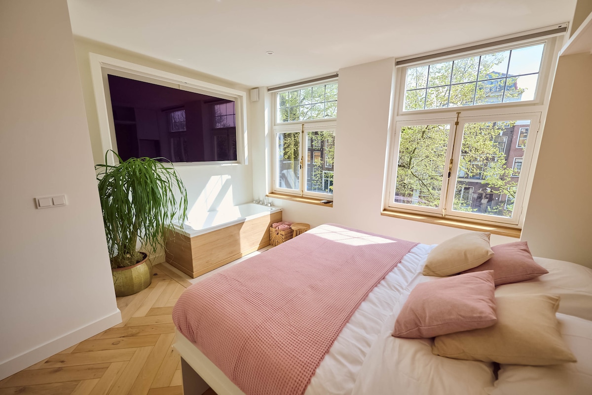 🏡迷人的運河房源,配有私人健康中心–歷史中心。 在Herengracht旁的5樓運河房屋體驗正宗的荷蘭生活。 ✨ 健康與舒適 在您的私人芬蘭桑拿房、按摩浴缸和淋浴間放鬆身心 🎬電影院氛圍 探索這座城市後,您可以使用85英寸家庭影院電視放鬆身心 ☕設備齊全且位於市中心 享受快速WiFi、Nespresso和高級設備與服務。 距離9街、Jordaan和水壩廣場僅幾步之遙。 您在阿姆斯特丹市中心的度假勝地。