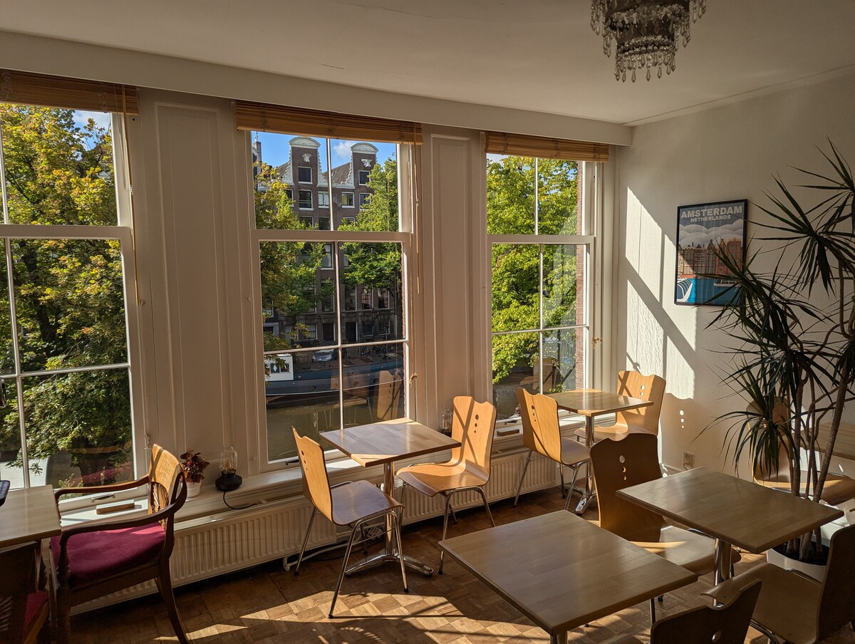 位於舊城區,步行1分鐘即可抵達公園和中央環路,我們有一間美麗的套房,可俯瞰辛格爾河(Singel)。 小型咖啡店、素食、健康食品和許多舒適、價格實惠的餐廳都在附近,也許是荷蘭最美麗的城市。火車站就在附近,是前往阿姆斯特丹、鹿特丹或海灘的完美地方(位於國家中心)。