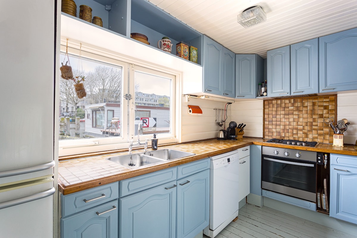 阿姆斯特丹市中心舒適的船屋,附設停車位
