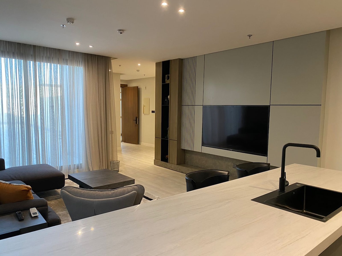 公寓位於利雅得北部最好的街區之一,即Al-Rabie區,設計有最新的豪華家具,配有75英寸智能螢幕、高速互聯網和Nespresso咖啡機。公寓擁有自助入住和完全隱私。大樓前面有一條步道,距離利雅得大道15分鐘,距離King Abdullah金融中心10分鐘,距離King Khalid國際機場15分鐘,無需停在任何交通信號燈前 還有訂閱(NETFLIX - Shahid) 房客可使用 自助入住