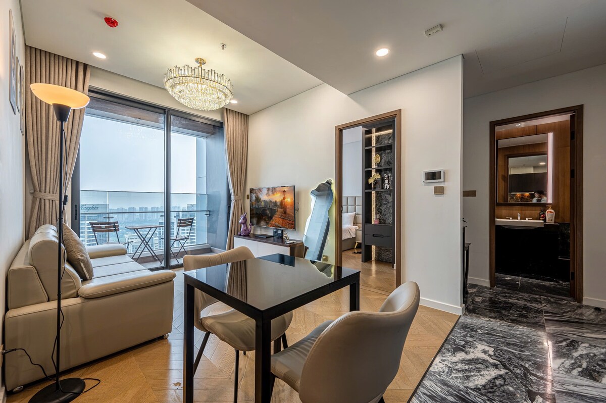 全新設計精美的大型單間公寓,位於太陽大道( Sun Avenue ) ,這是市內熱門的2區公寓。 只需10分鐘即可抵達Thao Dien和第1區市中心。 我們提供洗衣機和烘衣機、熱水淋浴、設備齊全的廚房和飯店品質的寢具。 您需要的一切就在樓下:許多熱門餐廳(越南菜、韓國菜、麵店、麵包店)、咖啡廳(星巴克、Highlands和當地景點)和超市。