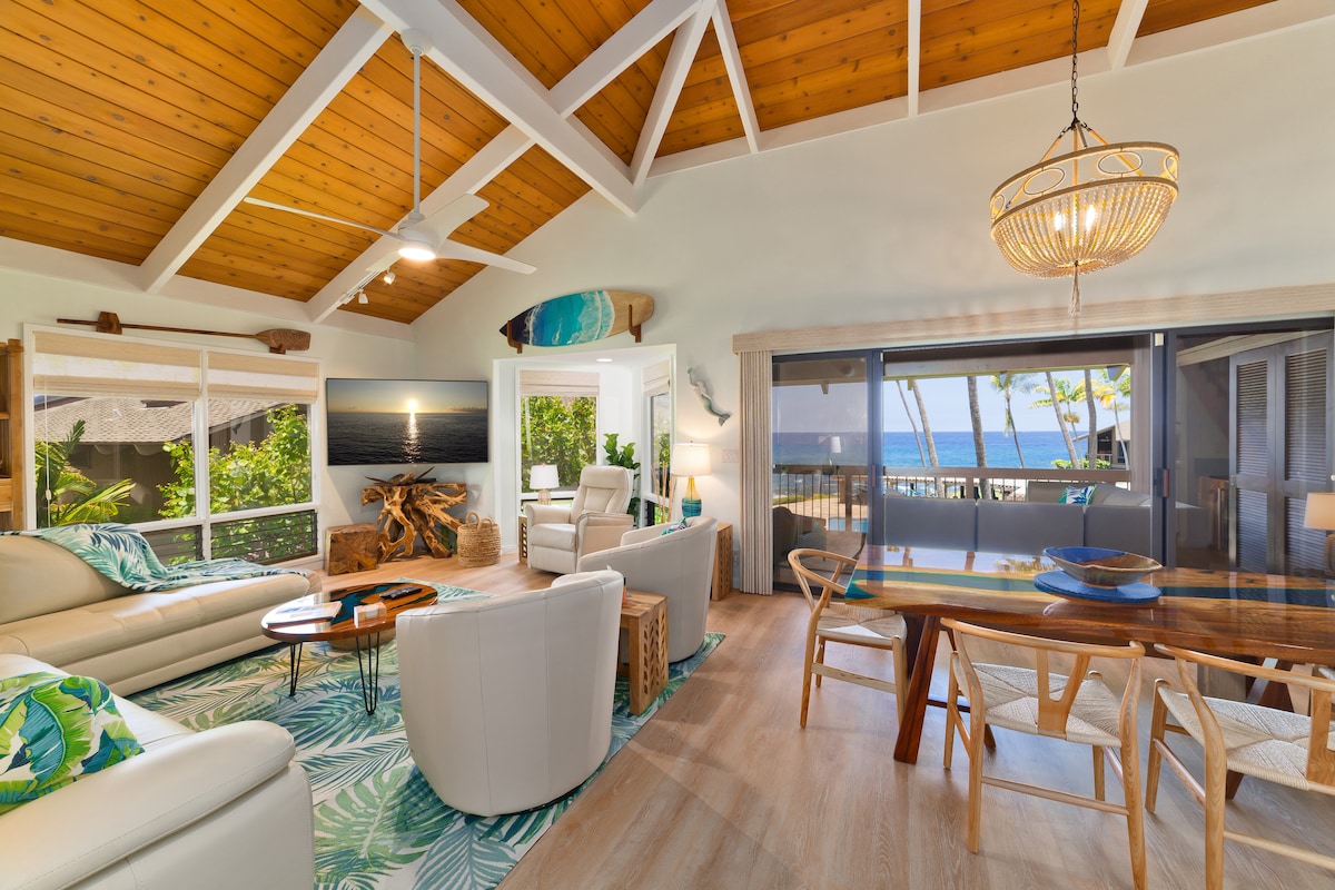 🌊Absolute direct oceanfront top floor, two-bedroom condo located in the heart of Kailua-Kona, Hawaii. Step inside to stunning ocean views from floor-to-ceiling windows and your private oceanfront balcony — welcome to paradise! 🌴 🌬AC in all spaces, elevator access (zero steps!), fully updated with high-quality furnishings throughout. From the balcony, watch sea turtles in the tide pools below, spot dolphins just offshore, and enjoy spectacular sunsets — all just steps from the ocean.