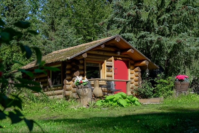 這棟小巧舒適的房子位於森林中。 打開窗戶,聽到鳥鳴聲和附近的加州溪流。 留意偶爾路過的麋鹿。 主層的沙發可拉出一張全尺寸牀。 在閣樓裡,一張標準雙人牀為房客提供充分的隱私。 步行一小段路即可抵達當地餐廳、酒吧、咖啡廳、自助洗衣店和郵局。 我們的房源是私人住宅。 我們是一個有小孩和狗的工作家庭。 雖然在阿拉斯加是合法的,但請將所有大麻產品放在車內。