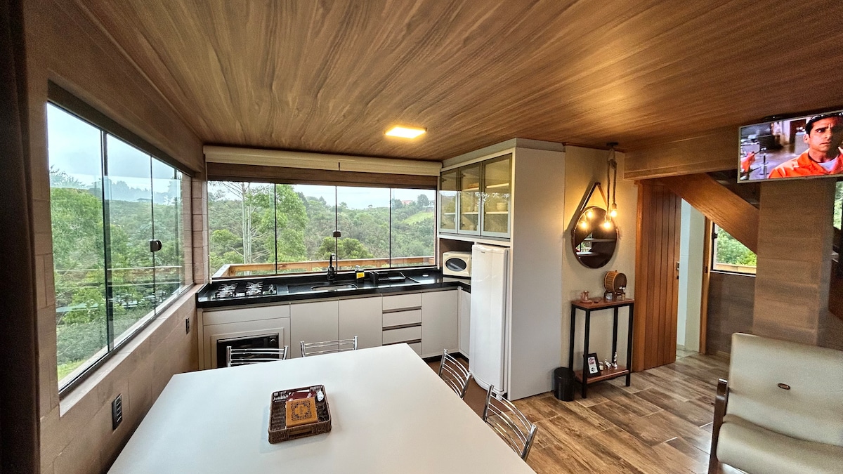 這間安靜的住宿地點位於海拔 1,350 公尺(4,430 英尺)處,您可以與全家人在此放鬆身心。距離庫尼亞市中心 15 公里(9 英里),距離帕拉蒂交通樞紐 30 公里(19 英里)。 靠近 Pedra da Macela、Lavandário、陶藝工作室,以及很棒的餐廳和咖啡館。 配備浴缸和桑拿的浴室,可以看到天空和山脈的景色。 兩間配有標準雙人牀的臥室。 設備齊全的廚房(包括空氣炸鍋和電動爆米花機)。 客廳有燃木壁爐,可以在寒冷的日子裡為您保暖,還有智慧電視,提供各種串流選項。