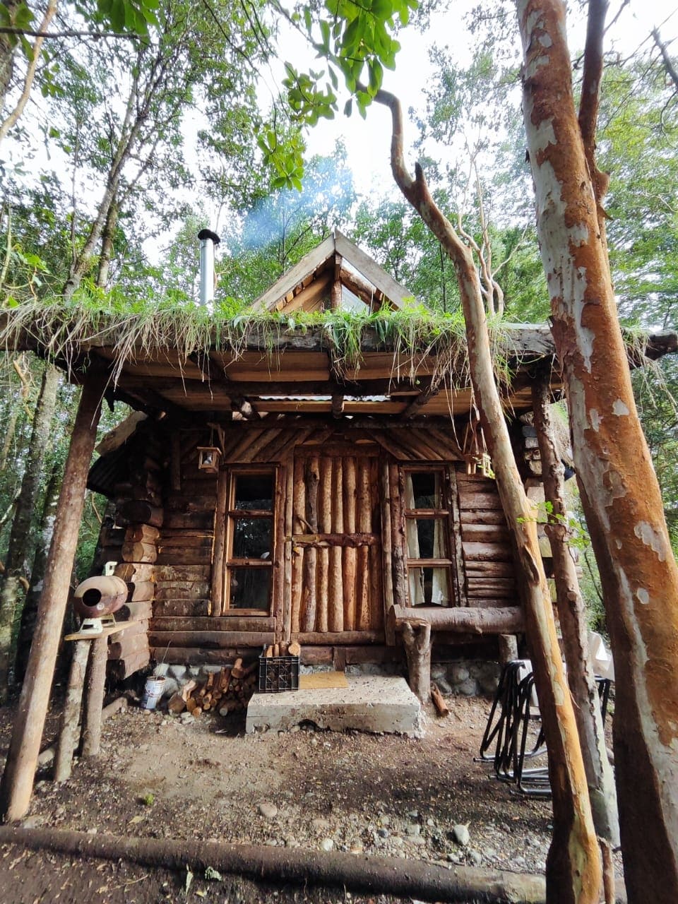 Es una cabaña rústica tipo Tiny house(cabaña pequeña) sustentable para 2 personas. MUY IMPORTANTE :No tiene tv, cuenta con un pequeño frigobar, secador de pelos, cuenta con cocina a leña y aire acondicionado frío calor. Cuenta con una tina caliente tiene costo extra de $40.000 pesos. Rodeada de árboles nativos fué construida tratando de mantener el equilibrio con el alrededor. Hay un fogón al aire libre. A 1 kilómetro y medio está el pueblo de Río Puelo y a 3 kilómetros de las Termas del Sol