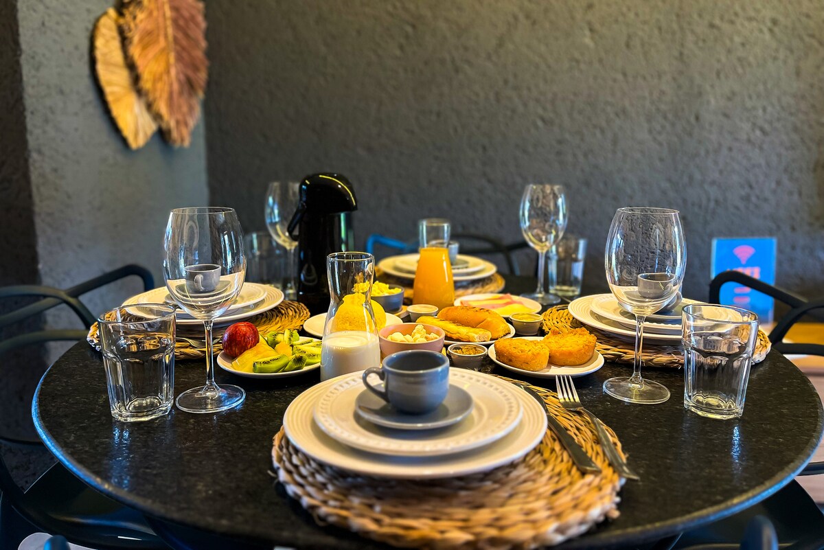 Our beautiful cabin is located above a small waterfall, surrounded by trees 🌳 and green gardens 🌿 that create a unique and relaxing experience 😌. 🏡 Amenities: • 1 bedroom with A/C ❄️ and private bathroom 🚿 • Spacious outdoor balcony 🌅 with private bathtub 🛁 • Fully equipped kitchen 🍳 • Smart TV 📺 • High-speed Wi-Fi 📶 💆♀️ You’ll also have access to our Spa Area, small gym 💪, BBQ area 🔥, and the entire property surrounded by nature 🚶♂️🍃 —perfect for relaxing walks