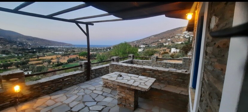 It's a cozy vacation home that can comfortably accommodate up to 7 people. The house has a panoramic view over the infinite blue of the Aegean Sea. Our home is ideally located if you are seeking to relax and discover the island of Andros. It’s located in a peaceful spot in the area of Agios Petros that is only 6 minutes away from some of the most beautiful beaches and the port of Gavrio. We are always glad to assist our guests so that they can explore the little gems of the island.