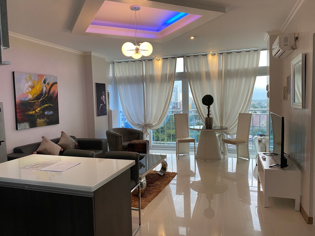 A newly refurbished luxurious one-bedroom apartment perfect for 2-3 guests. The apartment is 65 sq m, located on the 7th floor of Kandi Towers 2, with a fantastic view of Mt. Arayat.