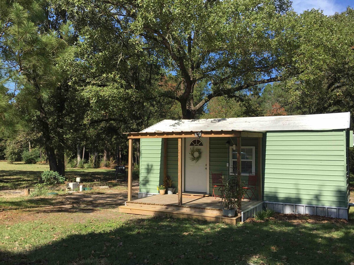 This Farmhouse Cottage is just right for one person or a couple! Located just outside the city limits and close to anywhere in town, yet nestled in on the back of our property under the oaks and pines and looking out over the pasture. Come stay with us next time you come to town!