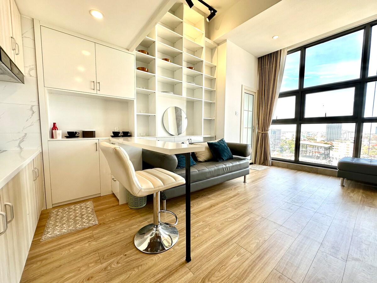 Experience the epitome of urban living in this brand-new, state-of-the-art condominium located in the vibrant city center of Phnom Penh. This stunning property offers the perfect blend of comfort, convenience, making it an ideal haven for professionals, digital nomads, and travelers alike. Despite being in the heart of the city, this apartment offers a peaceful and quiet atmosphere, making it an ideal space for those who work from home or need a serene environment to focus.