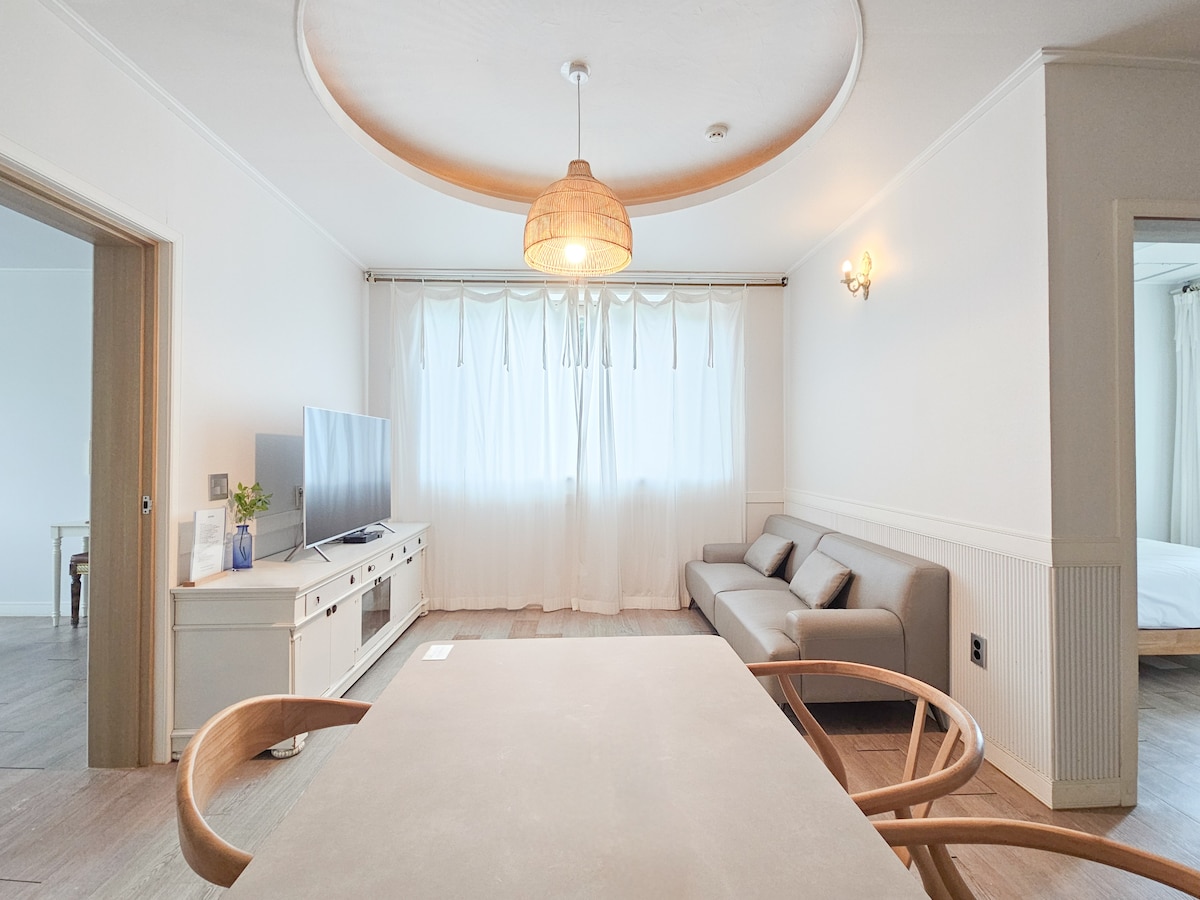 您好,我們是Onda ,正在研究和提供各種休息區域。 希望入住這裡的每個人都能度過舒適愉快的時光。 【住宿簡介】 這是位於清浦台海灘的情侶水療膳宿公寓Milky Blue。 所有房間都有提供獨立燒烤設備,還有瓦斯烤架。 你的團體無法預訂多間房間。 [房間類型] 單人房類型( 1張標準雙人牀+廚房+ 1間浴室)